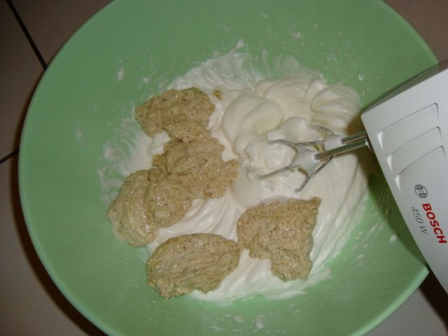 Cum se face: La blat, galbenusurile se amesteca cu 50 gr. zahar, pana cand isi dubleaza volumul, si se adauga nuca macinata amestecata dinainte cu praful de copt.